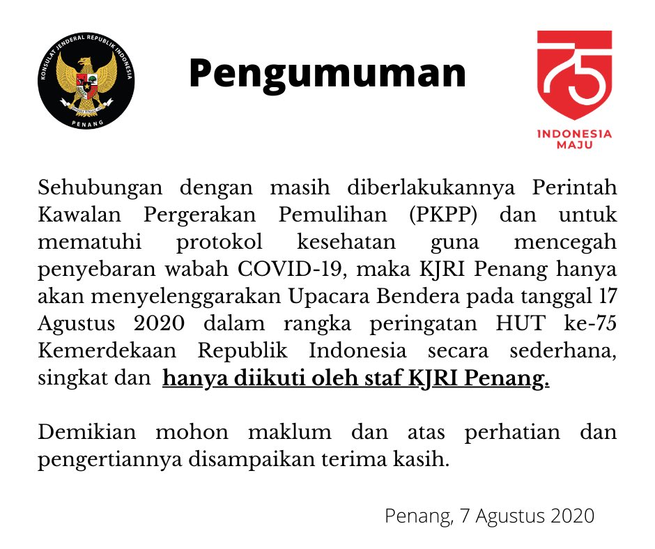 Komposisi itu terdiri dari satu orang komandan upacara dan tiga. Kementrian sekretariat negara ri kemensegneg merilis pedoman penyelenggara upacara pringatan hut ke 75 kemerdekaan ri tahun 2020 dengan protokol kesehatan. Hal ini untuk memperingati detik detik proklamasi pada hut kemerdekaan ke 75 ri. Tribunsumsel com pemerintah pusat akan menggelar ucpacara peringatan hut ke 75 kemerdekaan ri pada 17 agustus 2020 di istana merdeka jakarta.